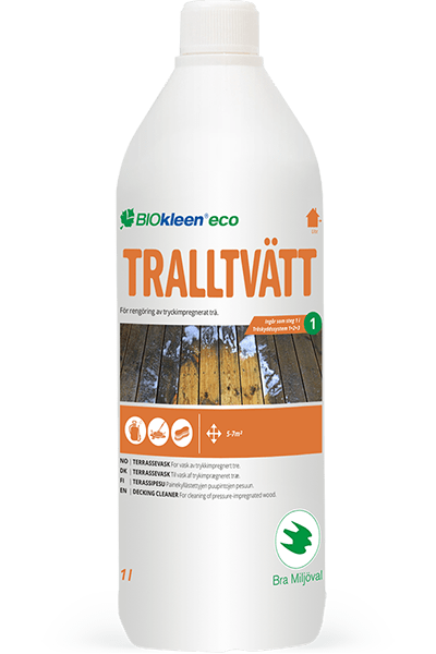 Gotowy do użycia, ekologiczny środek do czyszczenia drewnianych tarasów i desek. Szczególnie skuteczny w przypadku drewna impregnowanego ciśnieniowo. Biodegradowalny, oznaczony szwedzkim certyfikatem Bra Miljöval- szwedzkiego Towarzystwa Ochrony Przyrody. Opakowanie: 1L